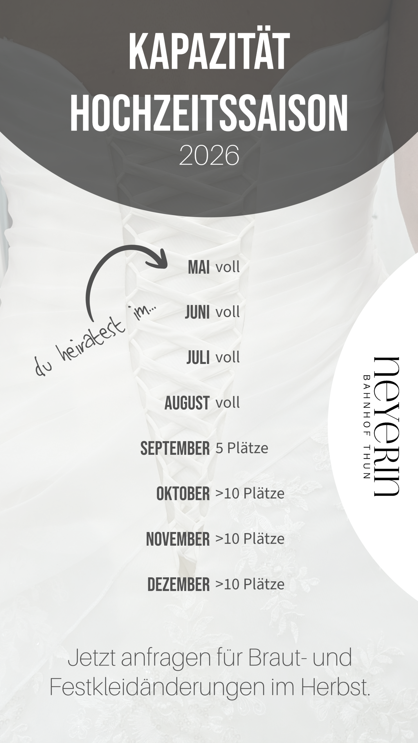 Melde dich frühzeitig für einen Termin – am besten sobald du dein Kleid hast oder sogar schon vorher.